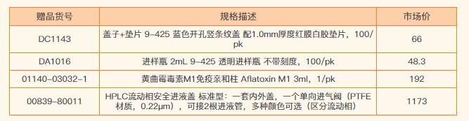 可选赠品:溶剂废液收集装置(HPLC安全进液盖)一件/免疫亲和柱6支。